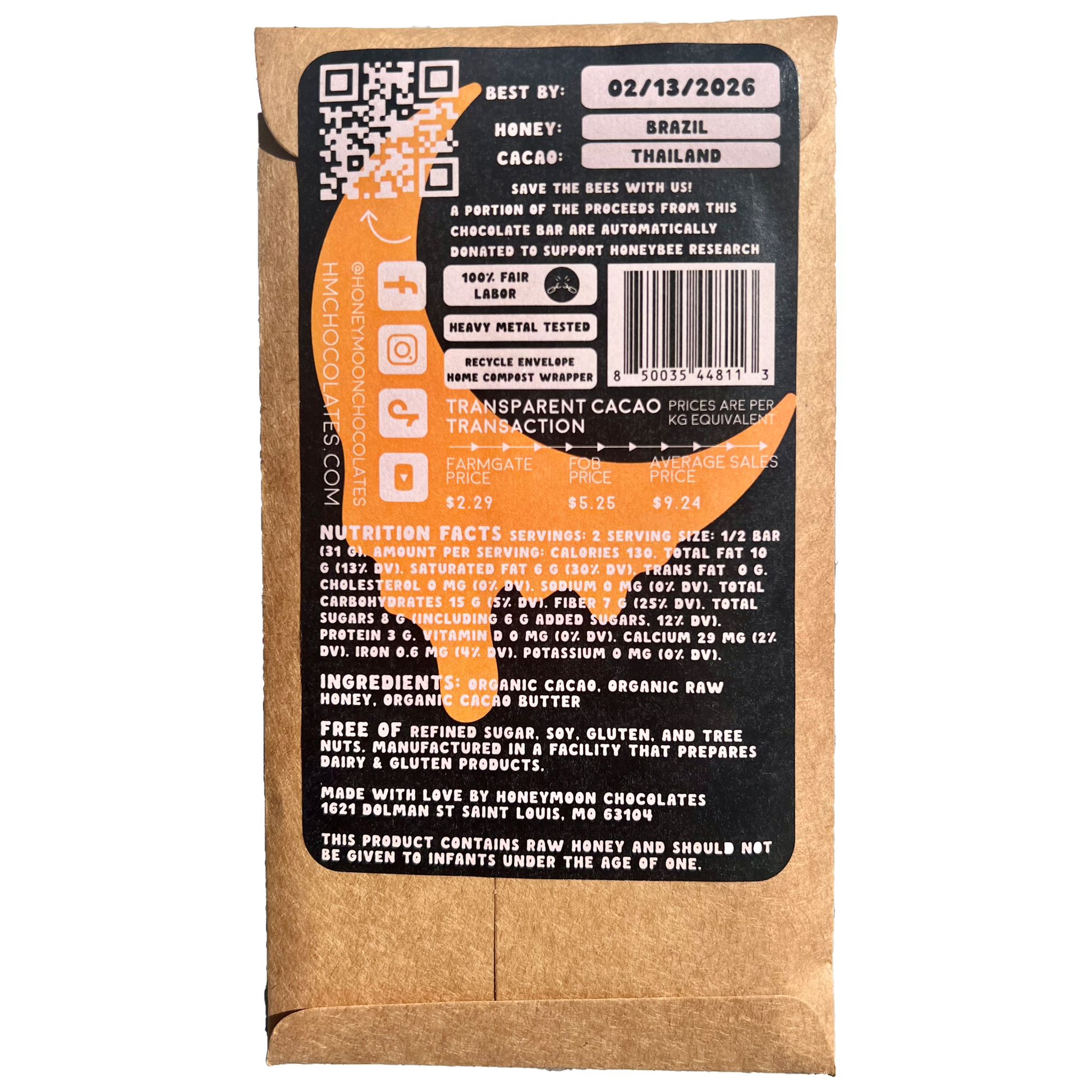 Honeymoon pledges to make an annual donation with each purchase to honeybee research via The Pollinator Partnership- see the back wrapper for more information on how to help save the bees!