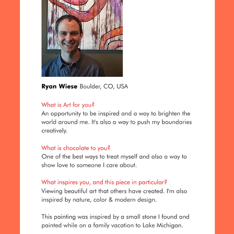 Looking for: dark chocolate vegan organic coconut milk chocolate bar vegan candy gourmet artsy chocolate bar art community Colorado artistic chocolate boutique romantic gift creative art chocolate bar bachelorette party favor wedding boutique chocolate fair trade chocolate ethically sourced organic galentine valentine love hipster natural chocolate vegan gift shop classy painting pink purple turquoise abstract art handmade chocolate artisan treats shop unique art gift vegan snack art museum gift shop vegan choc