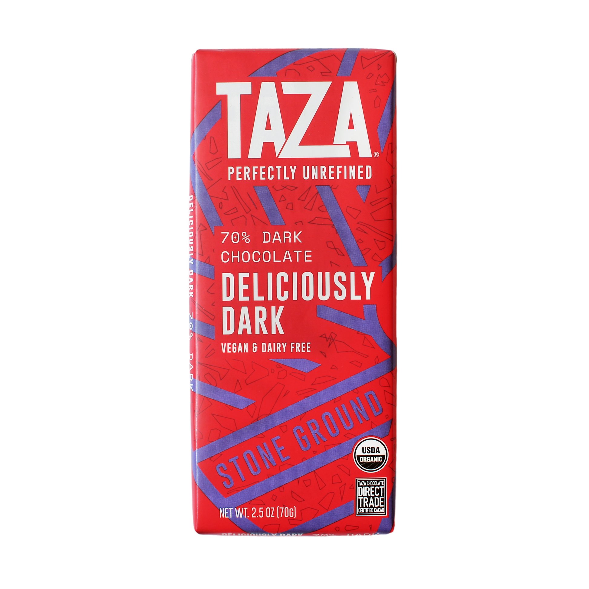 Perfectly unrefined 70% dark stone ground vegan chocolate. This bar strikes a perfectly bold balance of sweet and bitter. We grind our exceptional Direct Trade cacao with hand-carved granite millstones, so you can taste the true flavors of cacao shining through. Made in the USA at Somerville, MA factory! .